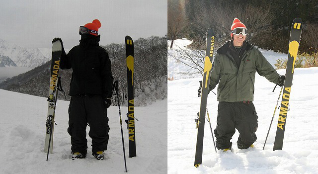 マテリアル : 板(ARUMADA) ブーツ( クナイスル) Binding(サロモン) ゴーグル(オークリー ) ウエア(SP-DESIGN) グローブ(アシュラム) マスク ( コクヨ ) ニット ( RICOH )